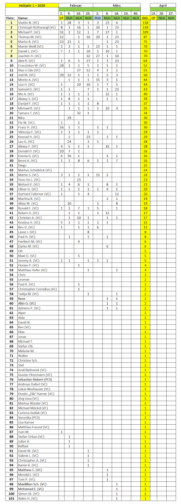 PunkteTabelle 2026: